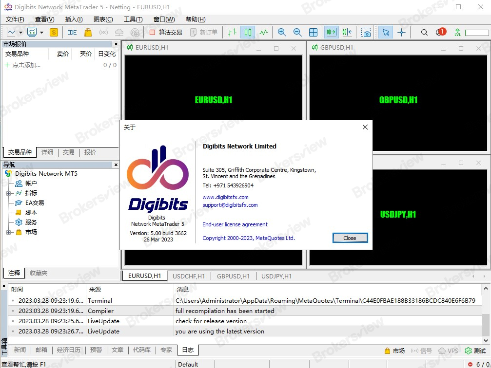 2. Merely Registered with the SVG FSA: Digibits Network Limited is registered in St. Vincent and the Grenadines, as indicated by the MetaTrader 5 software downloaded from their website.