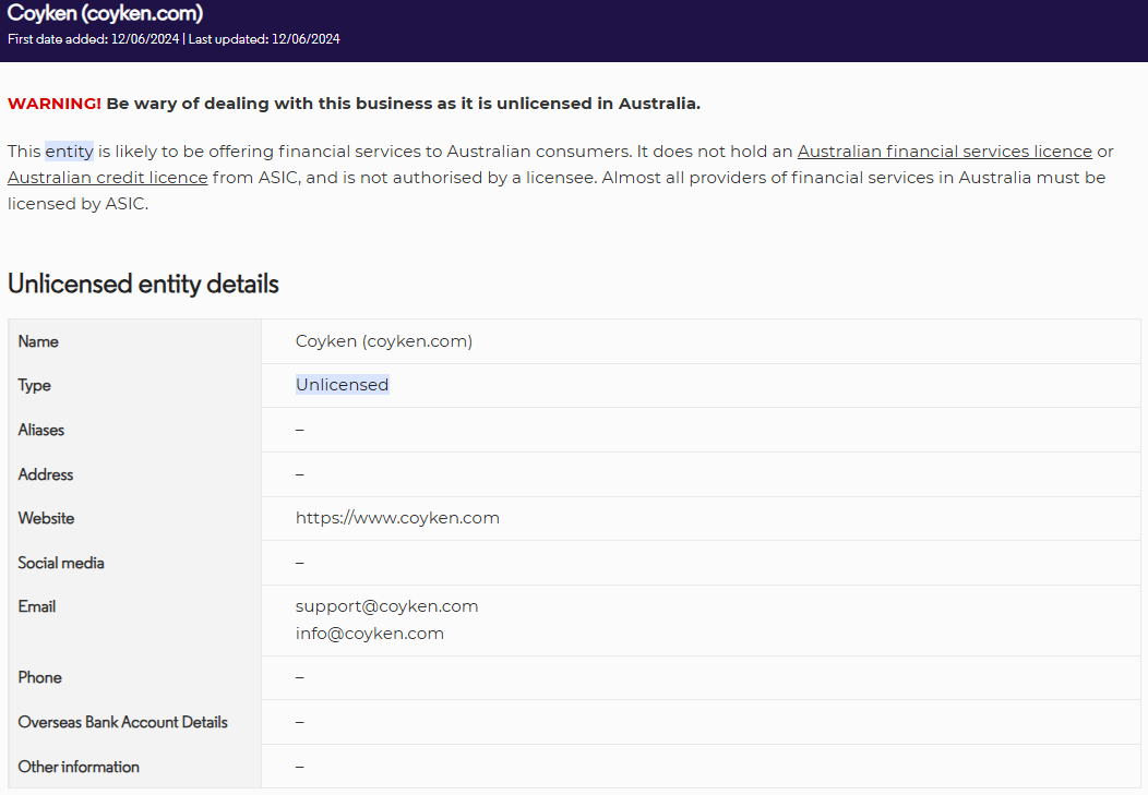 Both CapitalXTrade and Coyken are offering financial services to New Zealand residents. However, the FMA has confirmed that neither entity is registered to provide such services under New Zealand’s financial markets legislation.