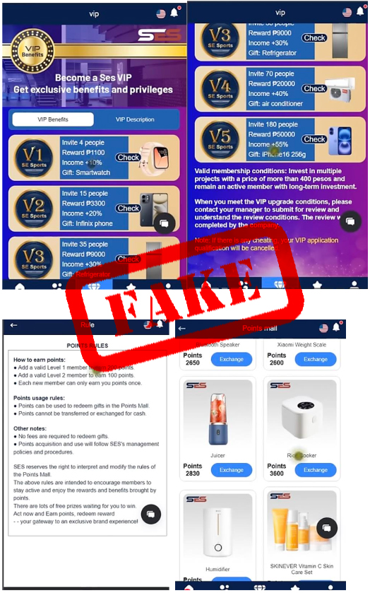 The SEC said the platform also offers cash referral bonuses and a point‑based rewards system where points earned from successful referrals can be exchanged for goods on its online “points mall.” Regulators noted that these referral commissions, not legitimate business activity, form the primary source of income, mirroring the structure of Ponzi and pyramiding schemes.
