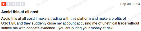 A client experienced a sudden account closure for Ultima Markets’ accusation of unethical trading, with no evidence provided. This happened after the client had made a profit of $1.8k.