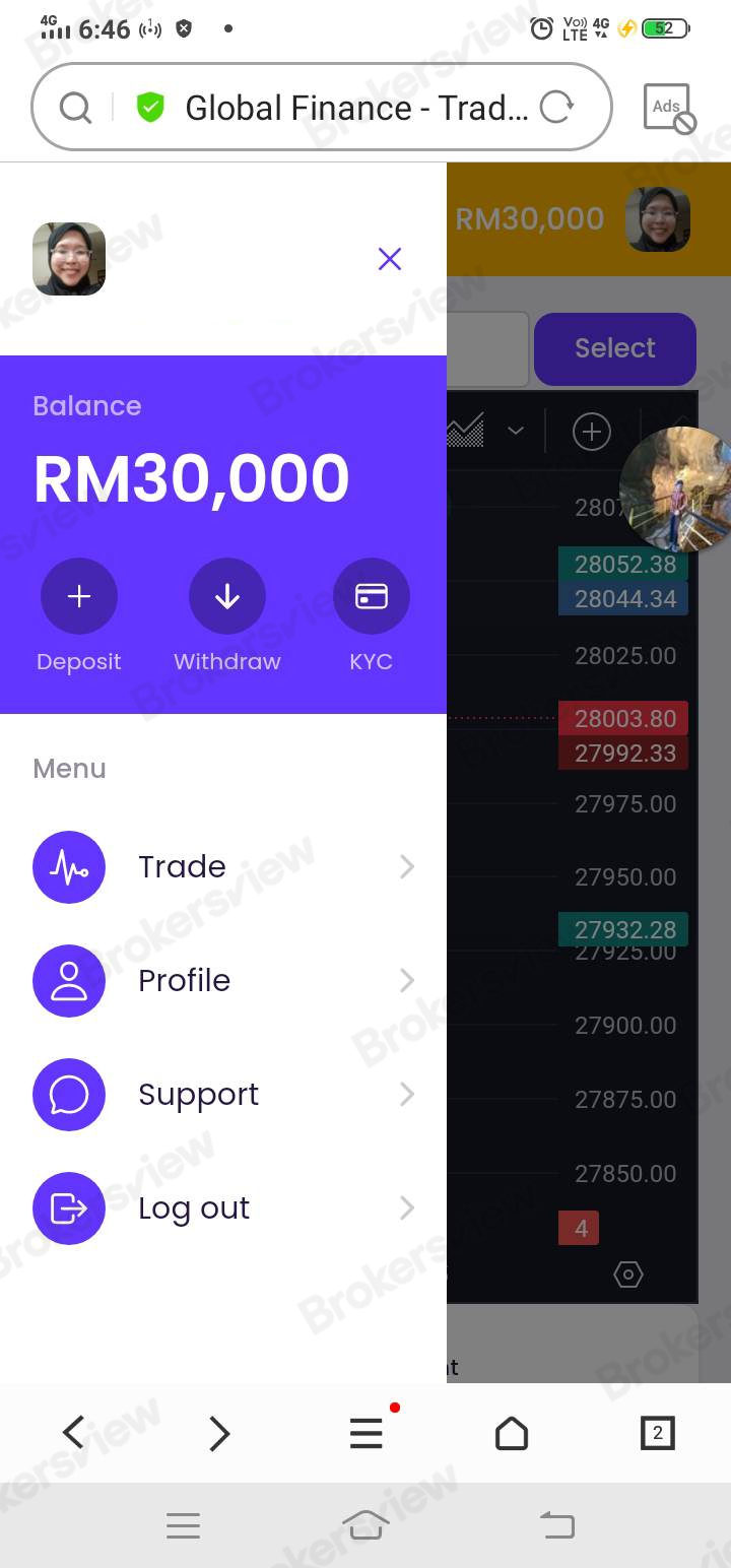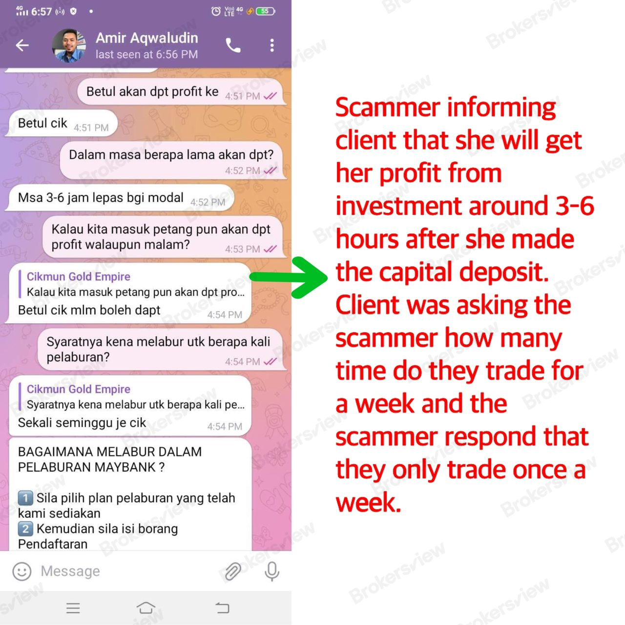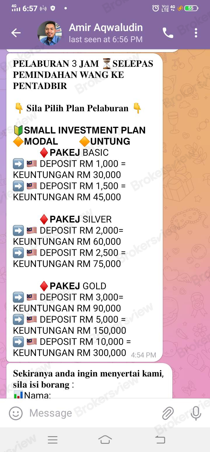 The investor decided to join the investment with 1000 ringgit and opened an account with Global Finance according to the link sent to her, and then handed over the account to the admin to trade on her behalf.
