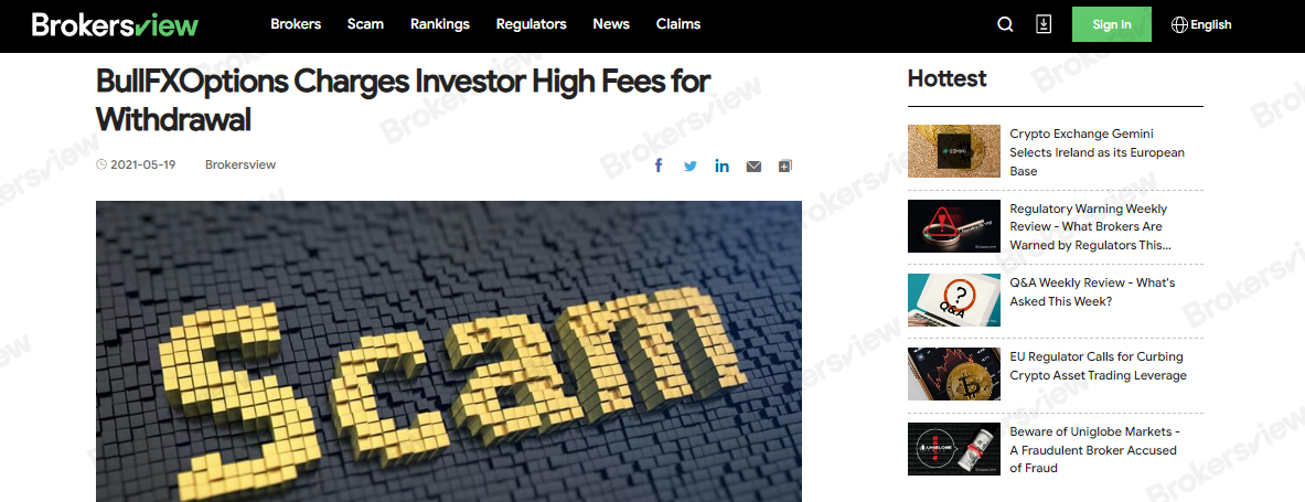 2. A published article by BrokersView in May 2019 titled "Bull FX Options Charges Investor High Fees for Withdrawal" sheds light on the fraudulent practice of demanding excessive fees and commissions during the withdrawal process. Victims are coerced into paying these fees, only to have the scammer disappear without a trace.