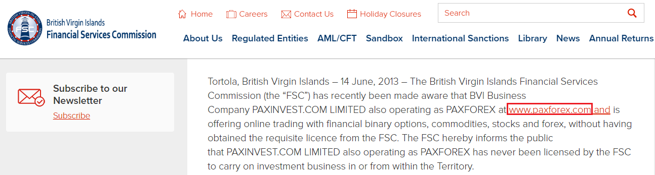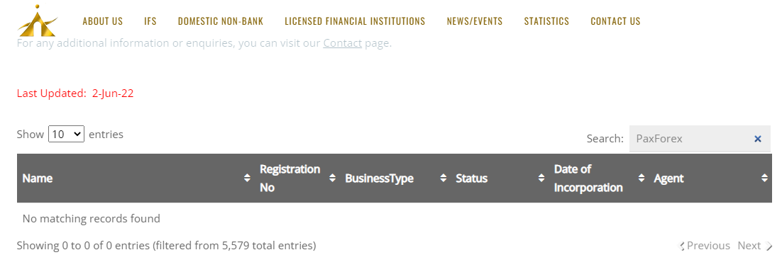 First, the company displays false information on its website concerning its registration with St. Vincent and Grenadines Financial Services Authority. For instance, it says PaxForex is a trading name of Laino Group register number 21973 IBC 2014. However, we couldn't find any entity appearing with this name on the SVGFSA website.
