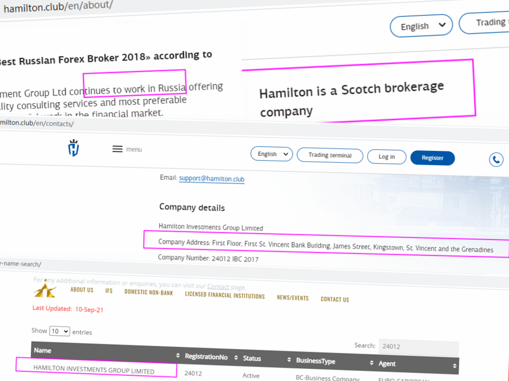 Besides, what surprised us is that Hamilton presents itself as a Scottish brokerage, which is quite funny, as it appears to have its origins in Russia, and is registered on the offshore island - Saint Vincent and the Grenadines(SVG). When checking on SVG Financial Services Authority (FSA) with the claimed registration number, we found a result, which means the broker is only registered in SVG FSA. However, SVG does not oversee forex trading and thus we may safely conclude that the brokerage is not regulated. That said, it runs without any regulatory license.
