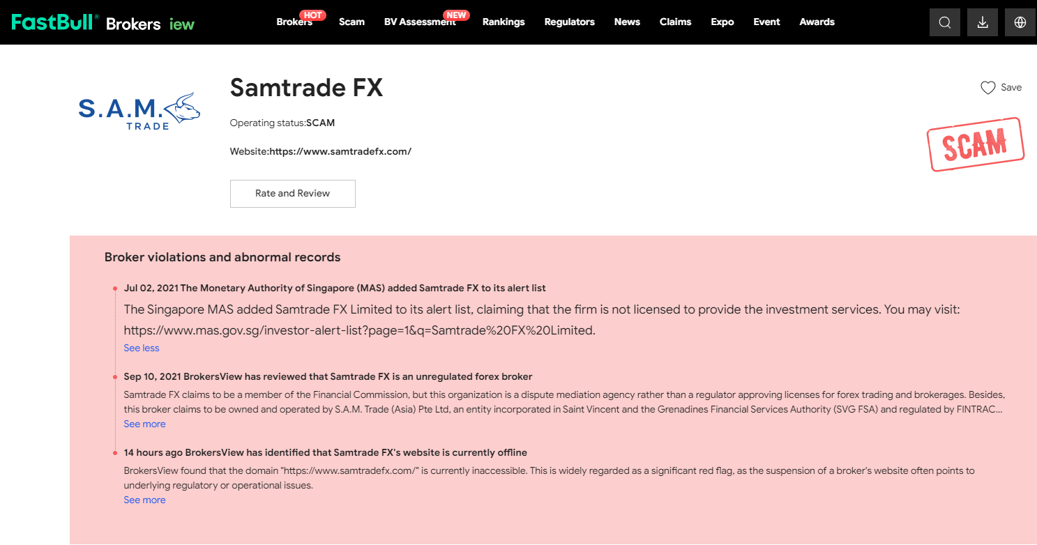 In 2022, BrokersViews expressed concerns about Samtrade FX’s irregular trading activities, while the Monetary Authority of Singapore (MAS) simultaneously began investigating the platform. MAS later added it to its investor alert list and revoked its licenses.