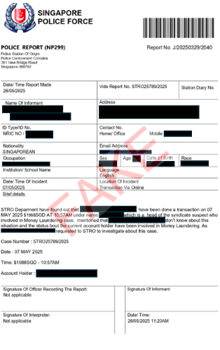 The Singapore Police Force (SPF) has issued a new warning against a scam variant involving the impersonation of officers from the Suspicious Transaction Reporting Office (STRO) of the Commercial Affairs Department. Since April 2025, at least 20 cases have been reported, with total losses of at least $408,000.