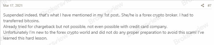 A user shares a painful experience with Skyline Trader FX, emphasizing their suspended status and categorizing them as a crypto broker. Despite attempts for a chargeback, the user faces obstacles, stressing the importance of thorough preparation in navigating the complex forex crypto world to avoid falling victim to scams.