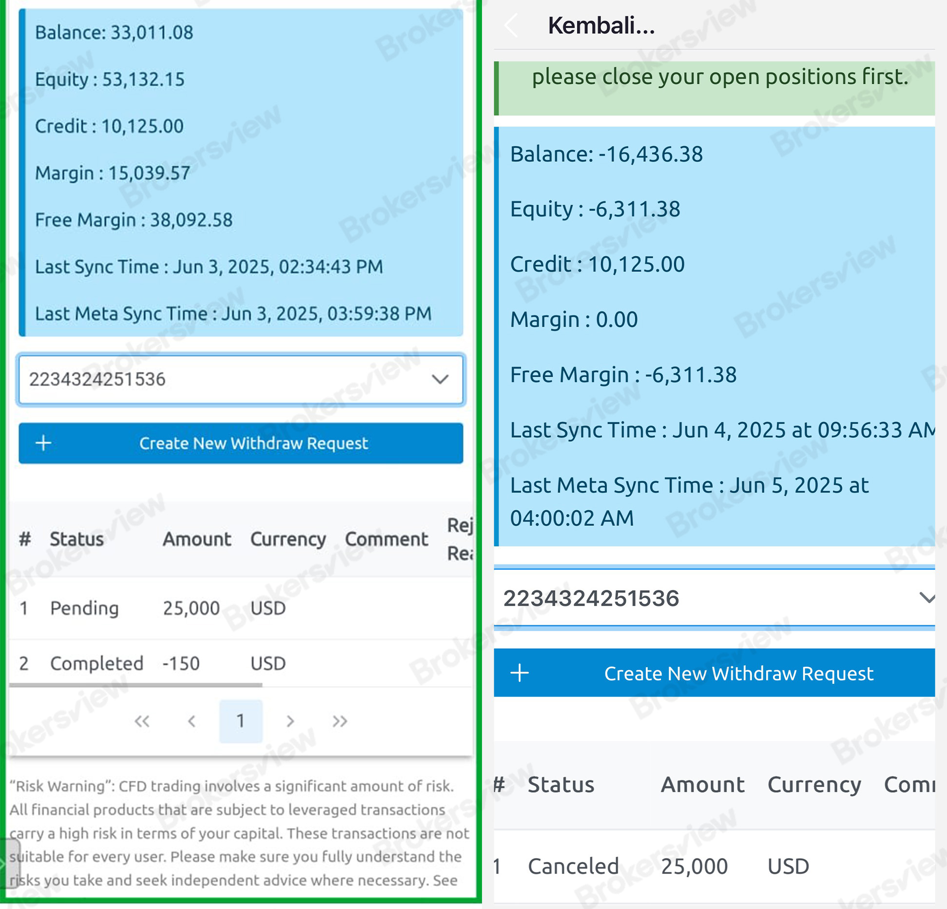 As of June 3, 2025, the client’s account remained in good standing. However, on June 4, he discovered that the account had been fully liquidated and reflected a negative balance.