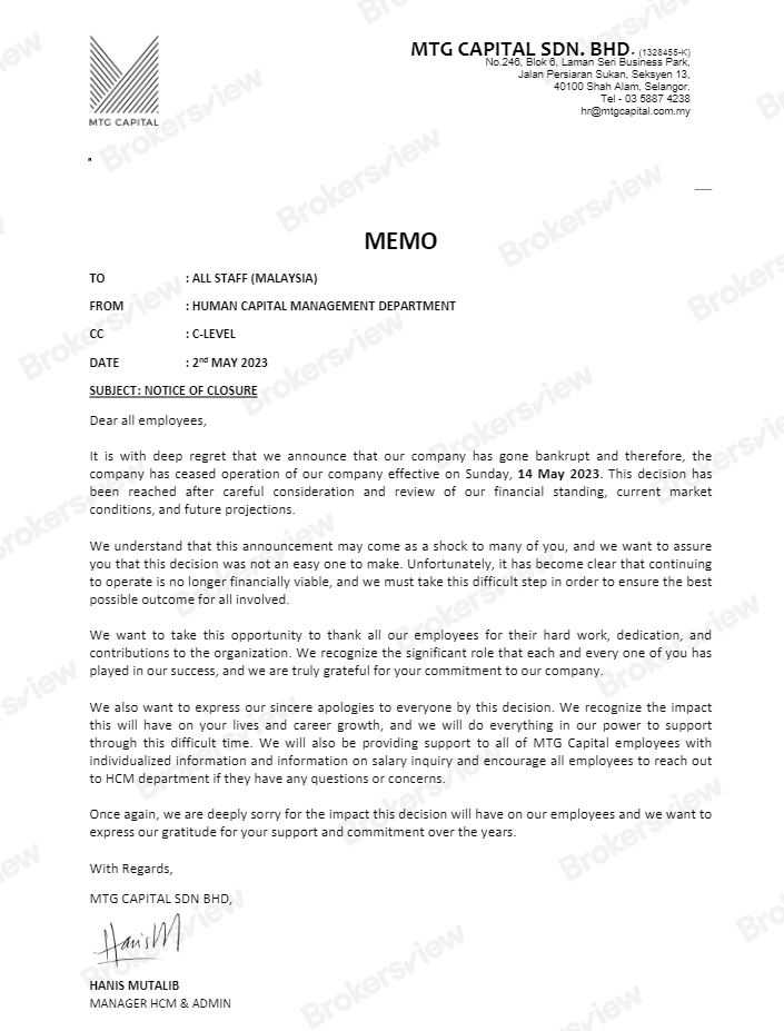 On May 2, employees of XeroMarkets received a Notice of Closure from Hanis Mutalib, manager of the human capital department, stating that the company is insolvent and will cease operations as of May 14.