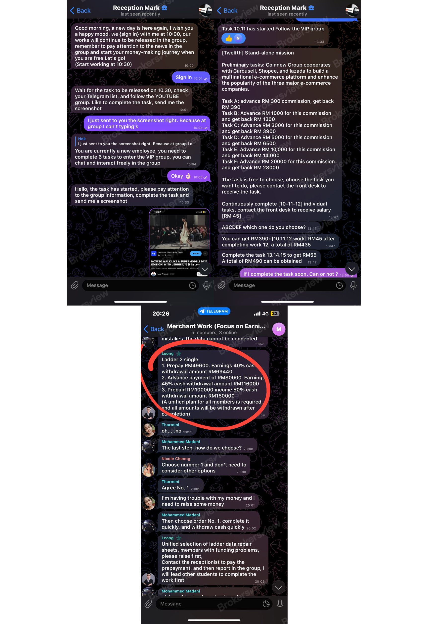 In this scam, the scammer pretends to send a job offer from a well-known business to attract victims, uses the wage as a pretext to lure the victims to deposit money on the illegal trading platform, and finally rugpulls with the whole website, leaving the victims with no way to protect their rights.