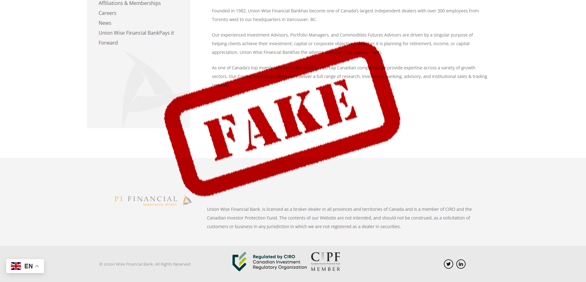 The Canadian Investment Regulatory Organization (CIRO) has issued a warning to investors about Union Wise Financial Bank, which operates through the website unionwisefinbank.com. The entity has been impersonating legitimate CIRO‑registered firms.