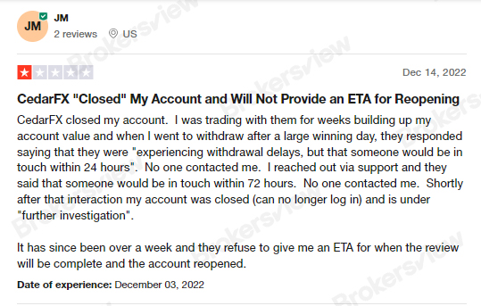 The clients also reported that CedarFX accused them of using high-frequency trading and refused to return their funds.