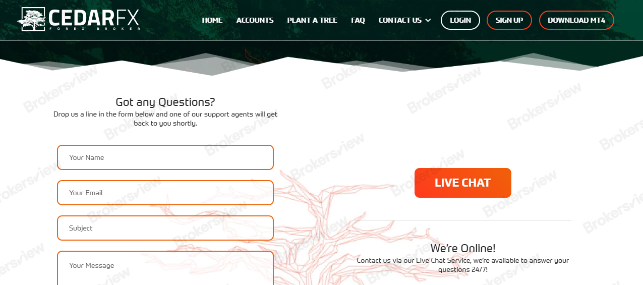 CedarFX is an independent brokerage focusing on knowledge-sharing and equipping clients with the necessary tools to succeed in financial markets. It claims to offer a variety of over 170 tradable assets, such as forex, crypto, stocks, indices, and commodities, with no commissions or transaction fees. It also claims that traders can utilize a demo account for practice before investing real funds, and its customer support team is available 24/7 through various channels. According to the broker, CedarFX provides 0% commission accounts to help clients maximize their returns and multiple deposit and withdrawal methods, including cryptocurrency transactions, for speedy and effective fund access.