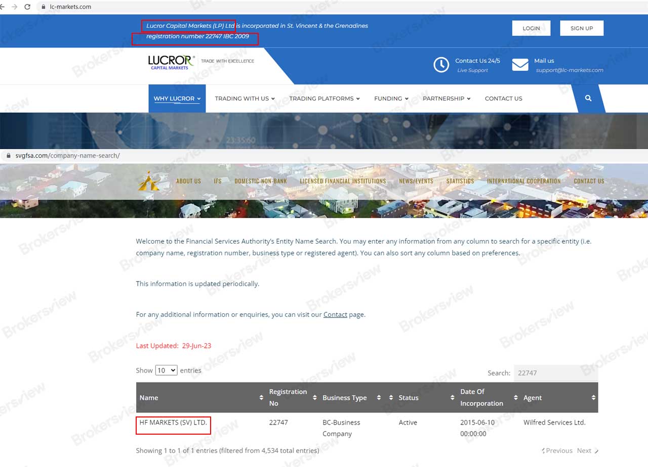 In an attempt to create an impression of being regulated, Lucror Capital Markets (https://lc-markets.com/) displays the registration number 22747IBC2009 issued by the Financial Services Authority of St. Vincent and the Grenadines (SVG FSA). However, the claim is a false statement, as the registered company under that number with the SVG FSA is called HF Markets (SV) LTD. Furthermore, the offshore financial watchdog has explicitly stated that it neither issues licenses for forex trading or brokerage, nor does it regulate entities involved in such activities. As such, Lucror Capital Markets, despite portraying itself as a reliable and safe forex broker, is an unlicensed trading platform with significant risks.