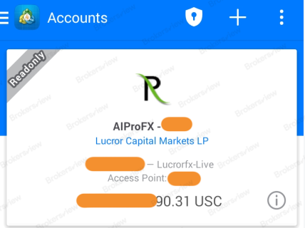 A screenshot provided by a YunikonFX client indicates that their account is associated with Lucror Capital Markets LP and AIProFX.