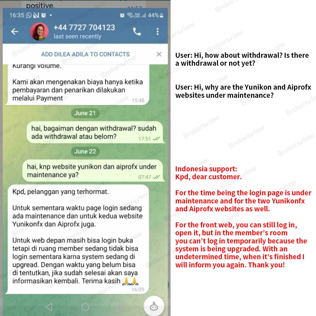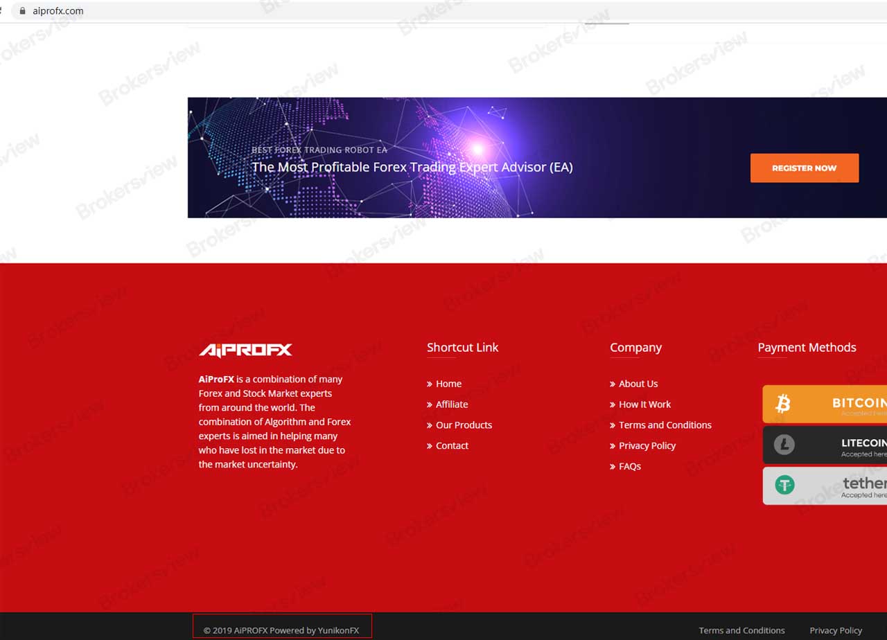 As for AIProFX, it is operated by YunikonFX, according to the information on its website (https://www.aiprofx.com/).