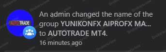 YunikonFX has a group on Facebook, and all leaders are there to update said issues from time to time. However, an alarming discovery was made when the group's name was changed from YUNIKONFX AIPROFX MALAYSIA to AUTOTRADE MT4.