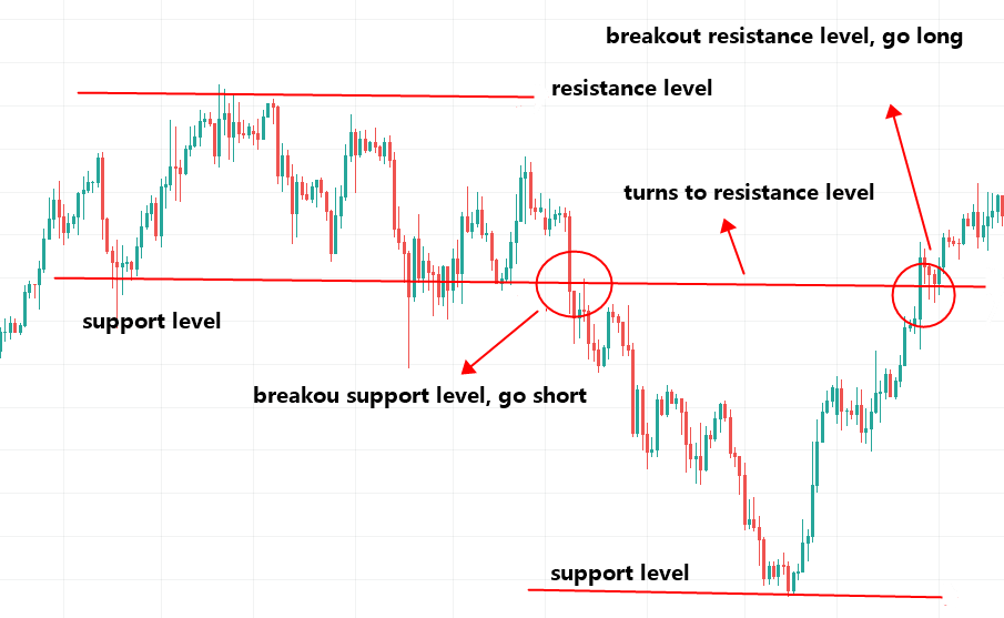 As the chart above, when the price breaks out through the support level, traders go short. And when price breaks out through the resistance level, traders go long.