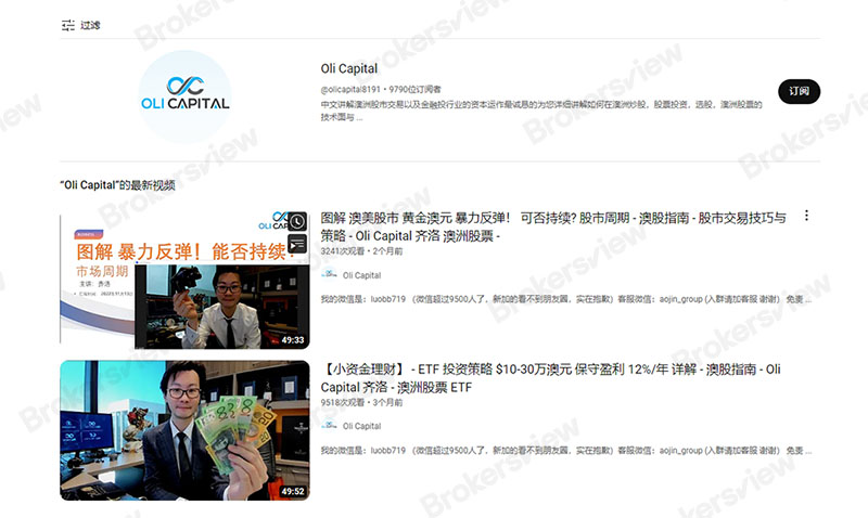 At the same time, Oli Capital was also active on social media. It has more than 9,000 subscribers on YouTube, with video views ranging from a few hundred to a few thousand. The videos mostly explained the Australian stock market.