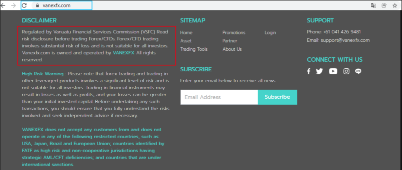 Besides, this broker claims to be regulated by Vanuatu Financial Services Commission (VSFC). We indeed found an authorised entity named "VANEX LIMITED", but VFSC provides neither authentication details nor domains of registered company for traders to verify. Consequently, it is not a hundred percent sure that the licensed entity is the one that runs the business under the trading name of VANEX.