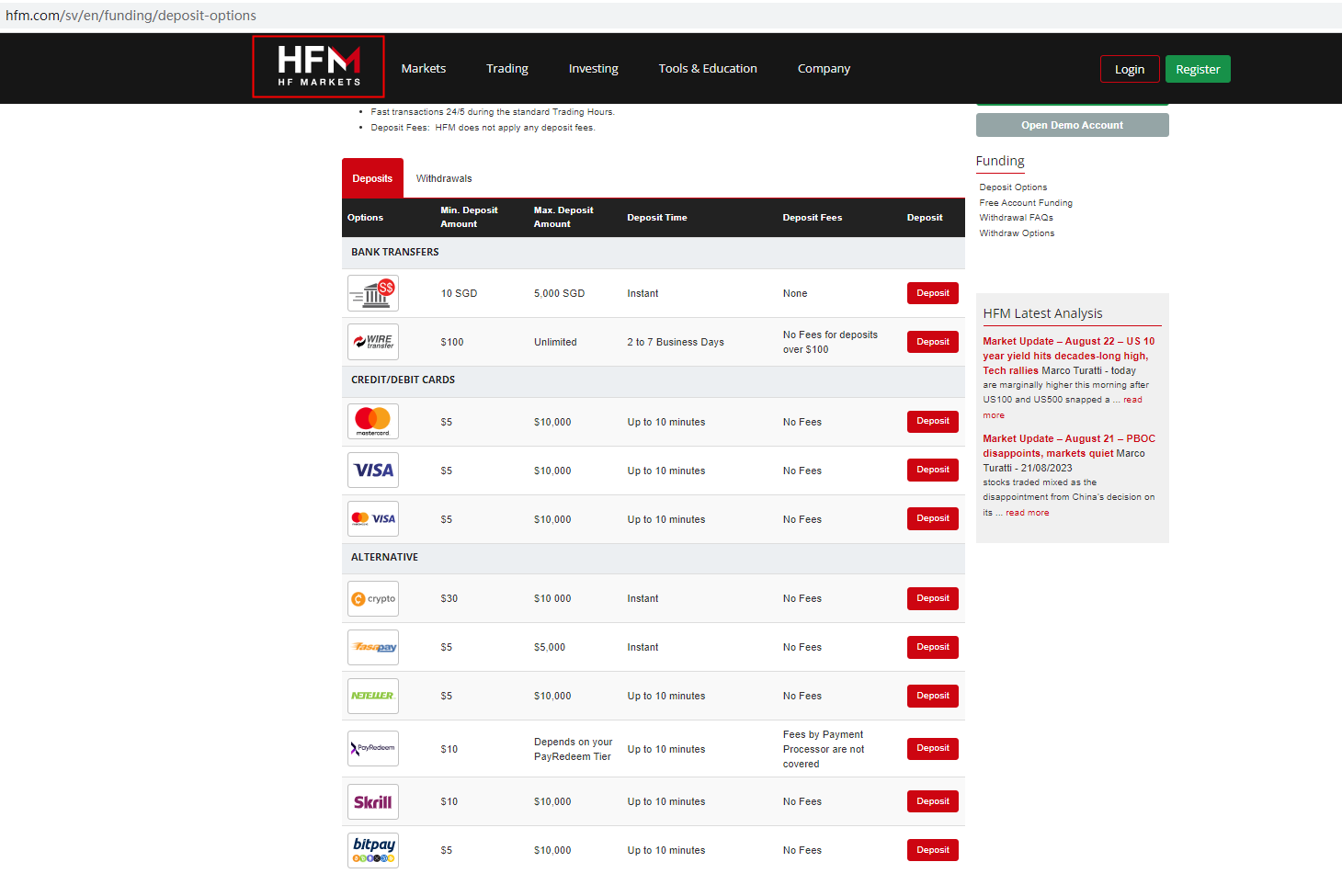 According to HotForex's website, Paypal doesn't appear to be available on this platform. While you may not be able to use Paypal, we have found a number of other ways for you to fund your account. Below are the screenshots of the HotForex's official website showing relevant information.