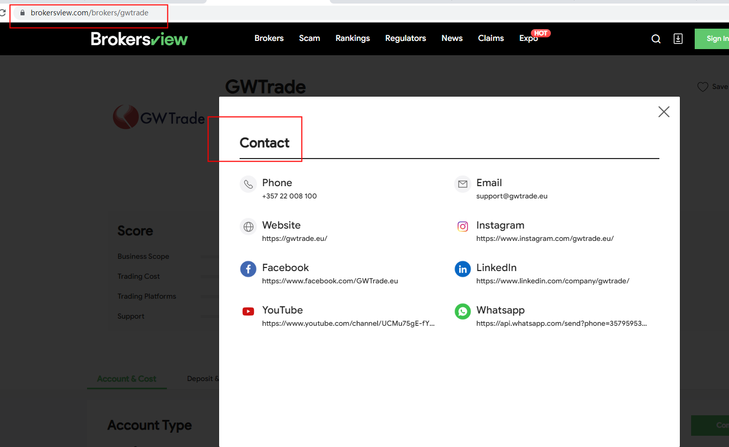 Yes, GWTrade has four social media accounts, including Instagram, Facebook, LinkedIn, and Youtube. We have collected those links and put them on the Contact Card on our GWTrade review page. You can go to our full review of GWTrade to see the links and click on them to land on your desired social platform.