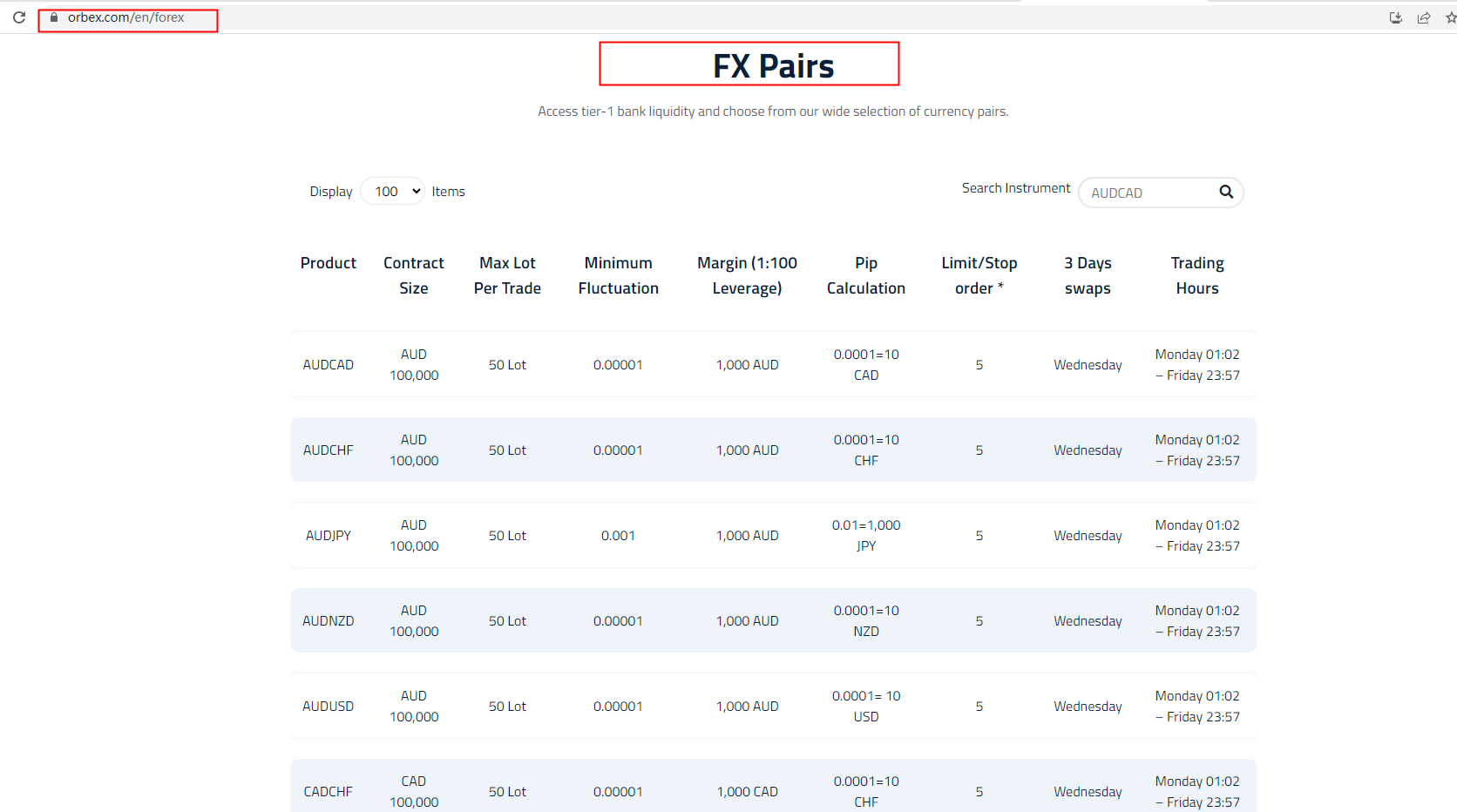 Orbex has listed the forex paris it provides in the "Forex" section on their website but hasn't given the specific number of pairs. Therefore, we recommend that you ask the official customer services directly for a more accurate answer. For more trading details of this broker, please check our full Orbex review.