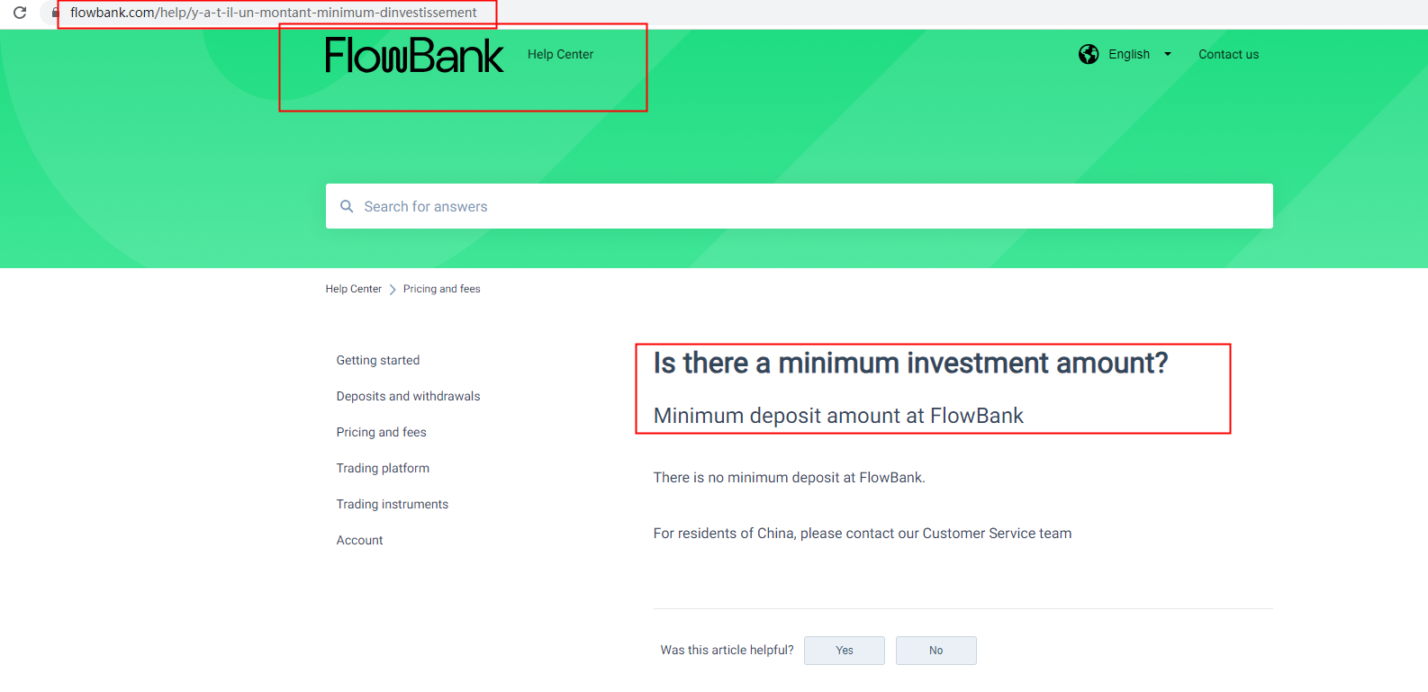 We found relevant information about minimum deposit in the FAQ section on their website and the screenshot below shows where the information is. However, to achieve the most accurate answer, we recommend that you ask the official customer services directly. For more details on this broker, you can check our full FlowBank review.