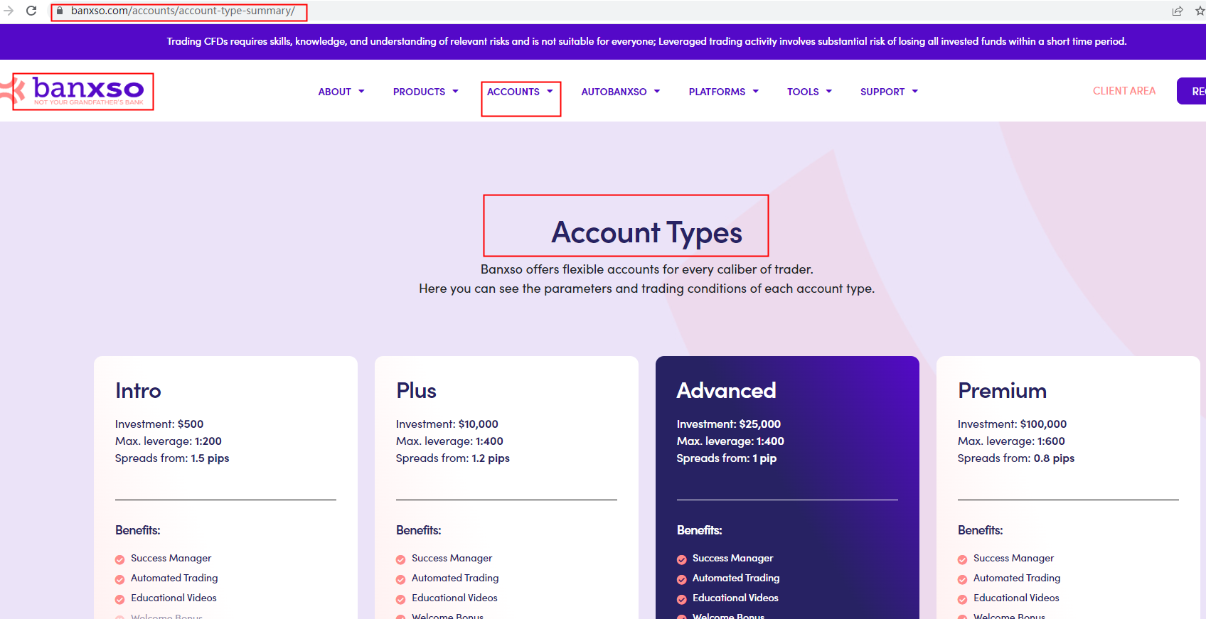 Banxso provides four account types and we have found relevant information in the "Account Type Summary" section on their official website. To achieve the most accurate and current answer, we would recommend contacting the platform's customer service. For more details about this broker, you can refer to our full review of Banxso.