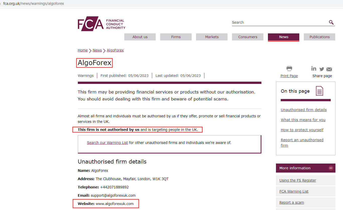 AlgoForex is a scam and has been red-flagged by the Financial Conduct Authority (FCA), the UK financial watchdog.