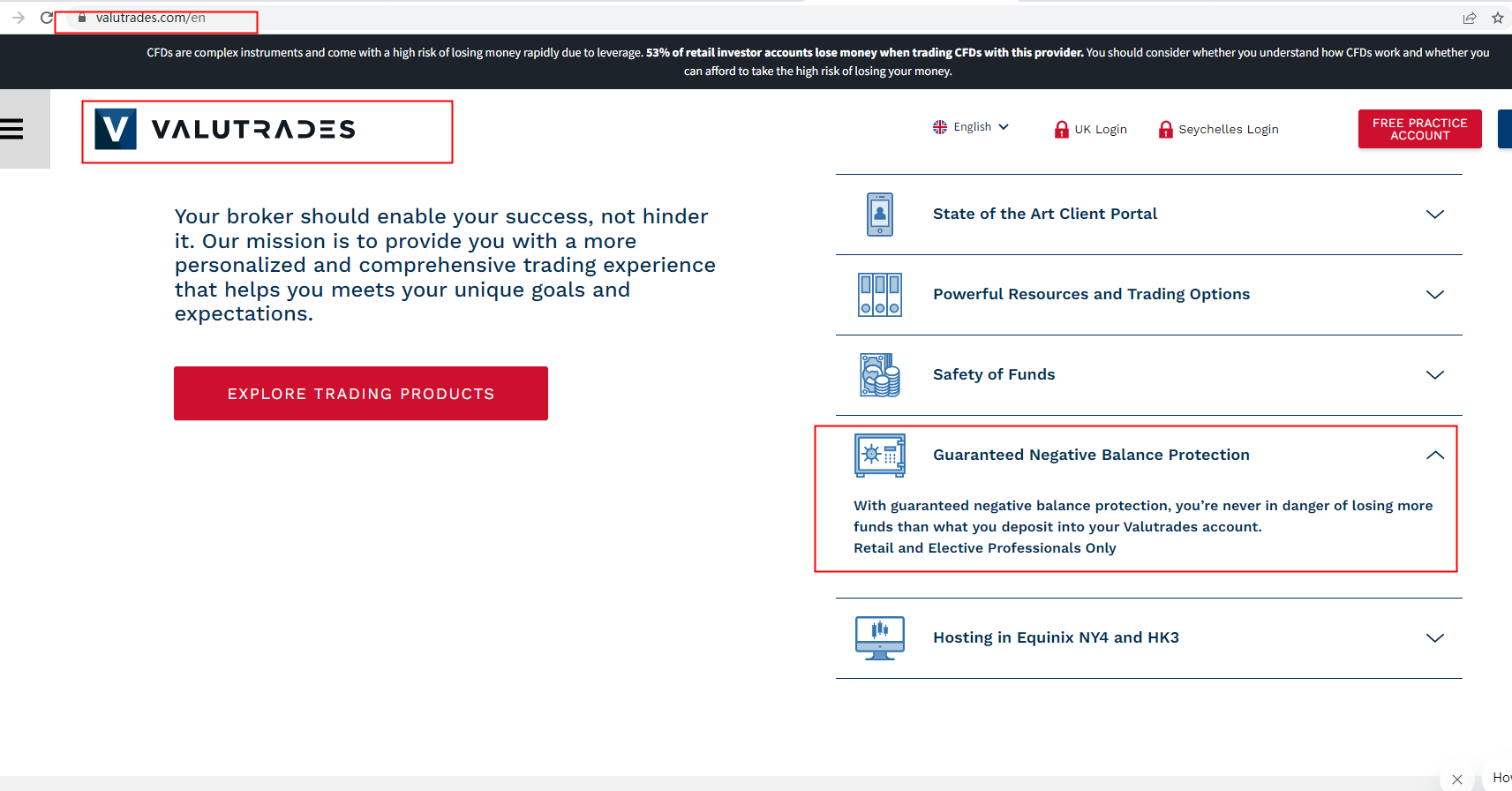 Valutrades only offers Guaranteed Negtive Balance Protection to retail and elective professionals. The screenshot belows can guide you to locate the relevant information. However, to achieve the most accurate and current answer, we recommend that you ask the official customer services directly for a more accurate answer. For more details about this broker, please check our full Valutrades review.