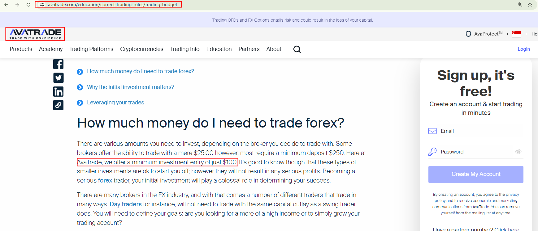 Avatrade requires the minimum deposit at $100. The broker provides educational resources, with articles specially written for beginners. You can find this information on their official website. To see if it is suitable for you, Avatrade Demo account may be a good option to get a comprehensive understanding.