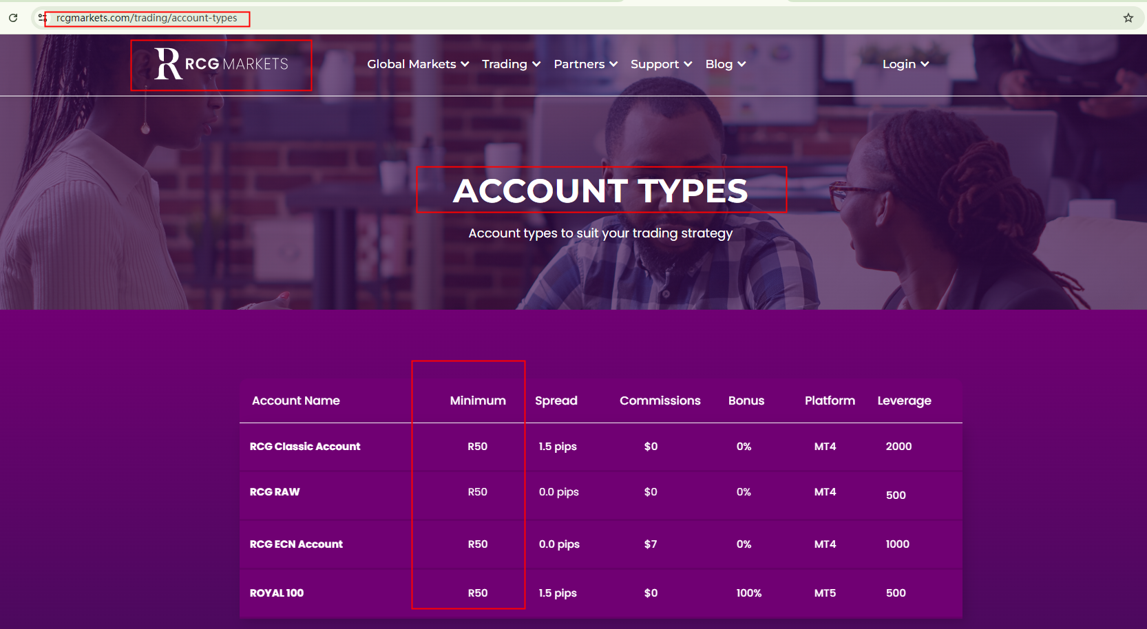 Thank you for reaching out to us. The minimum deposit for all account types on RCG Markets is R50. You can find this information on their Account Type page. For more details, we recommend contacting their customer service team.