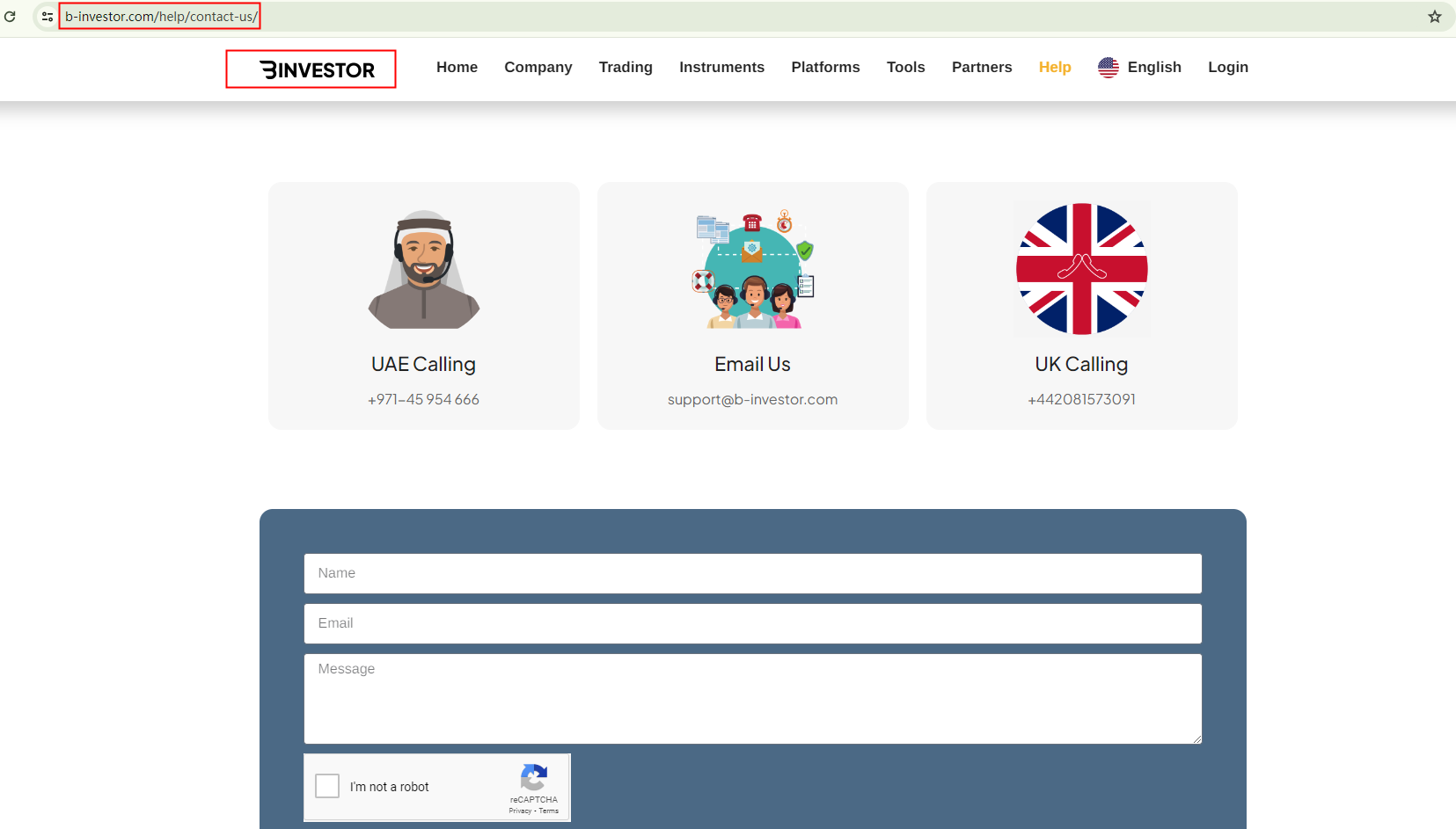 B Investor's website does not disclose detailed information about its accounts, including spreads, leverages, minimum deposits, and commissions. For more comprehensive information, we recommend reaching out to their customer service. Attached is a screenshot from their official website with contact information.