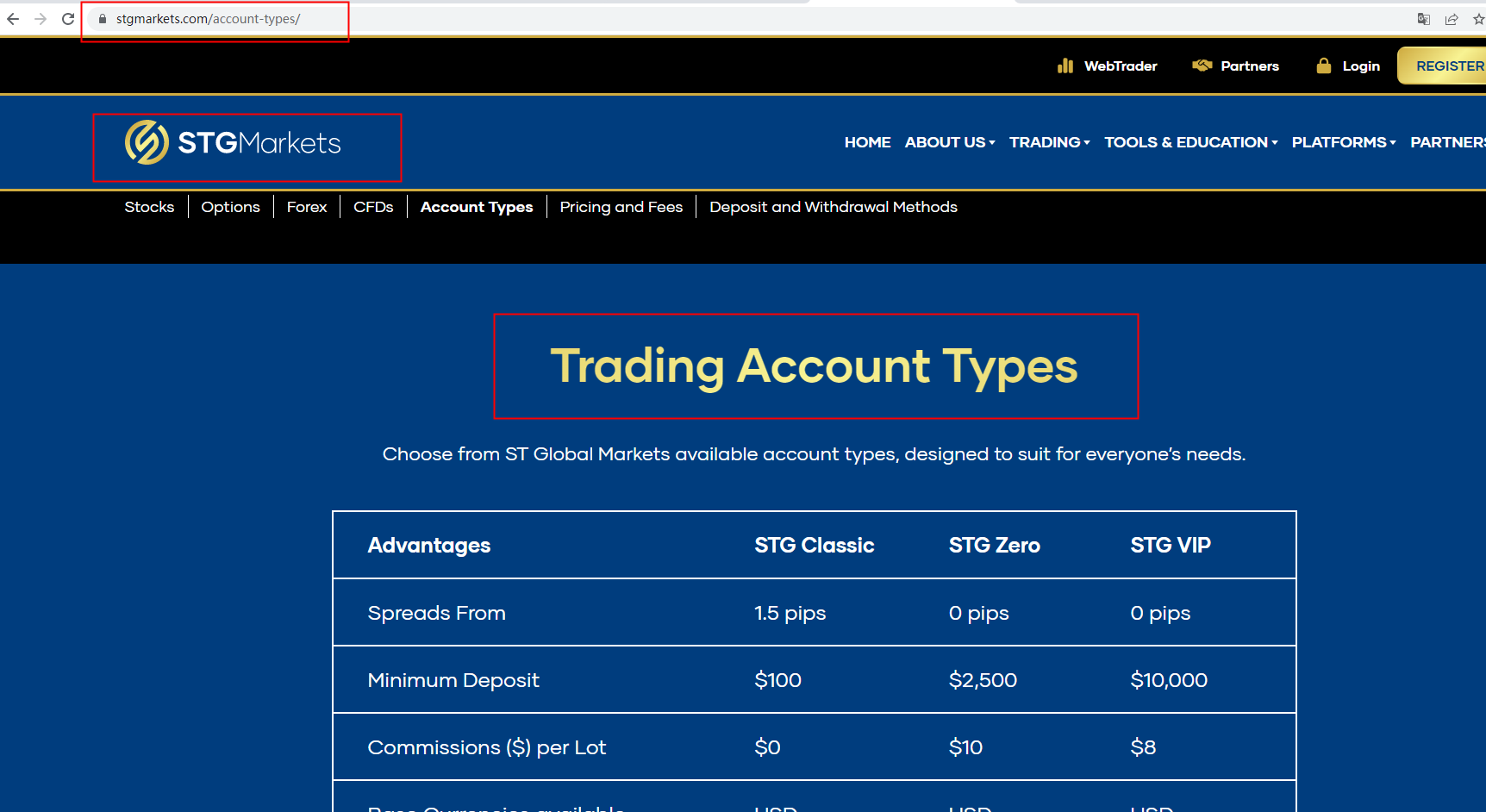 Regarding your question, you can go to the "Account Types" under the "Trading" section. At the same time, we would recommend contacting customer services through their official website to achieve the most accurate answer. For more details about this broker, please refer to our full review of ST Global Markets.