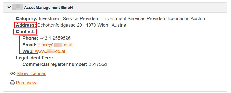 4. If all the steps above have been done, don't forget to check the most important information: check if the firm details published on Austria FMA website matches the ones you'll go to trade with, especially the website and email etc.