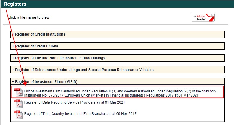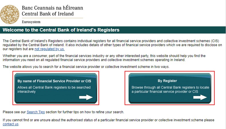 http://registers.centralbank.ie/?utm_medium=website&utm_source=CBI-footer&utm_content=43731 ;