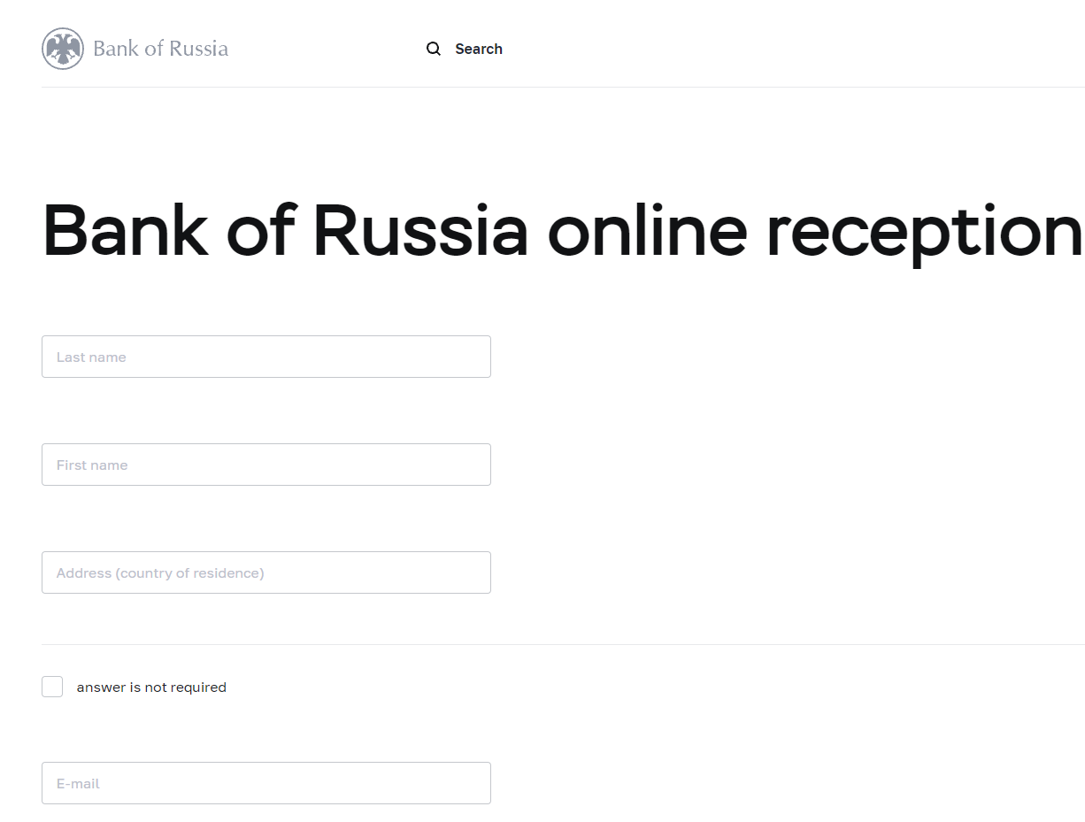 Online Complaint Form: https://www.cbr.ru/eng/reception/