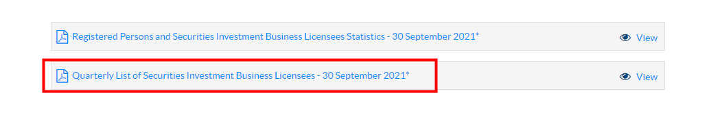 4. To check more license details of the broker, you can click the List of Securities Investment Business Licensees on https://www.cima.ky/securities-statistics ;