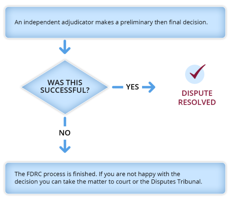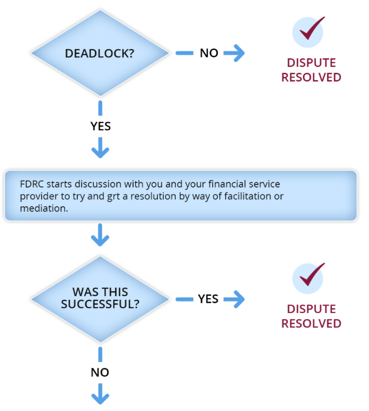 The FDRC also has In-house Experts specializing in conflict management. It provides a three-level complaint process designed to effectively and thoroughly resolve disputes.