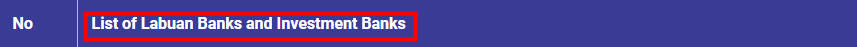 Note: 'Labuan Investment Banks' and 'Money Brokers' can provide forex trading service.