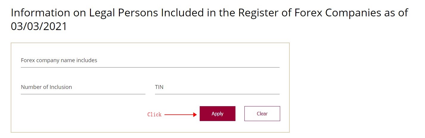 2. Enter the TIN or name into the search bar on http://www.nbrb.by/engl/finsector/forex/register ;