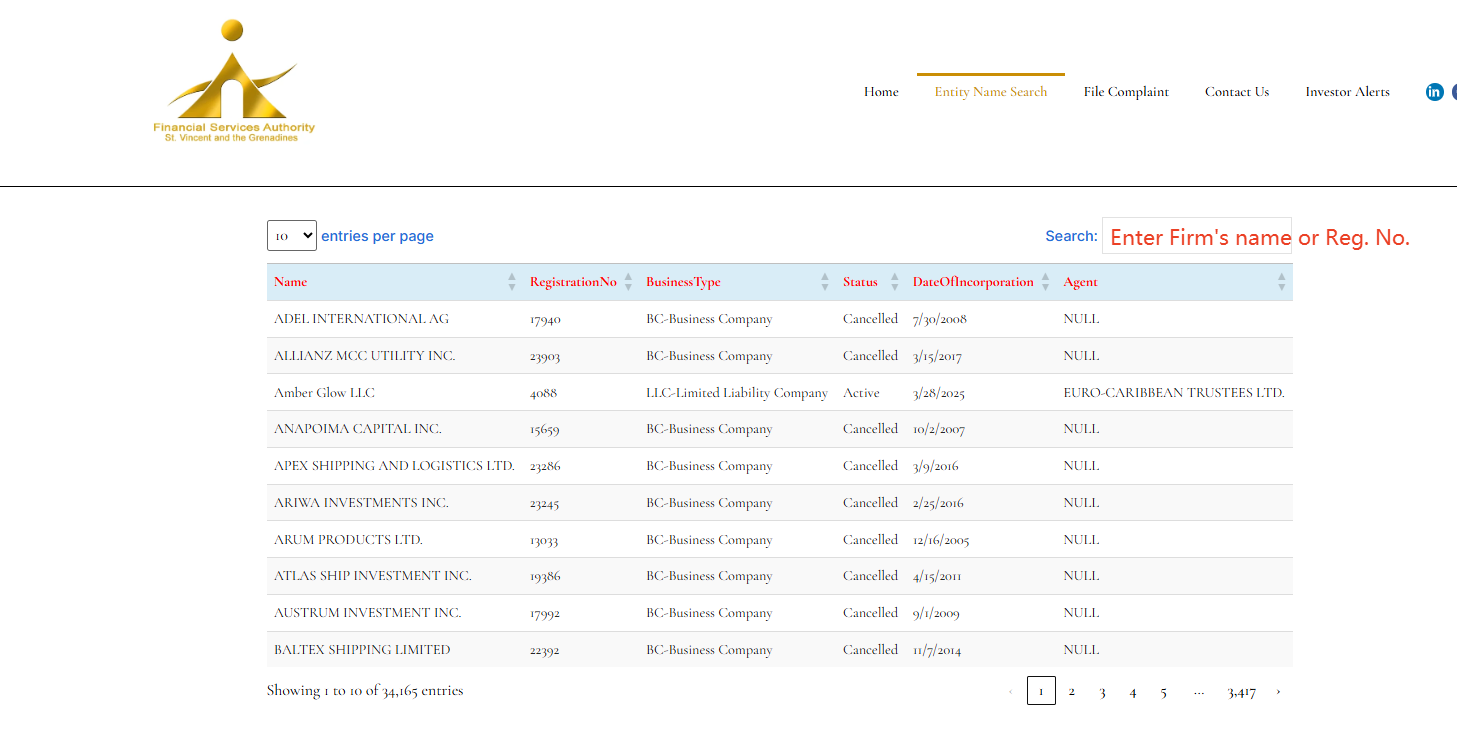 Generally, the profile of an SVG FSA-registered broker can be found on the SVG FSA website using the Entity Name Search portal.
