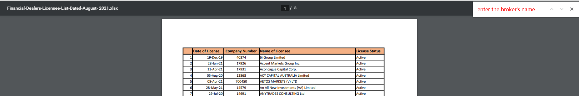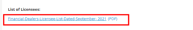 2. Click the link below the 'List of Licensees' on https://www.vfsc.vu/70-prevention-of-fraud-investments-act/, and search the company number or name in the list through 'Ctrl+F'.
