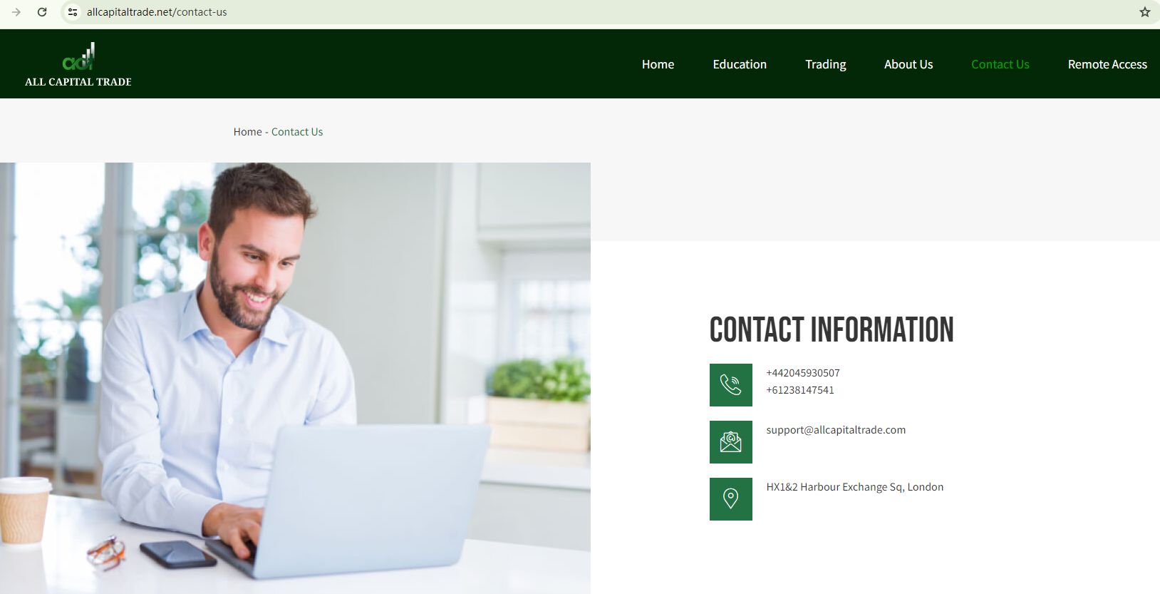 此外,尽管位于英国,但没有迹象表明它已在金融行为监管局(FCA)注册。因此,All Capital Trade 正在非法提供英国境外的金融服务。