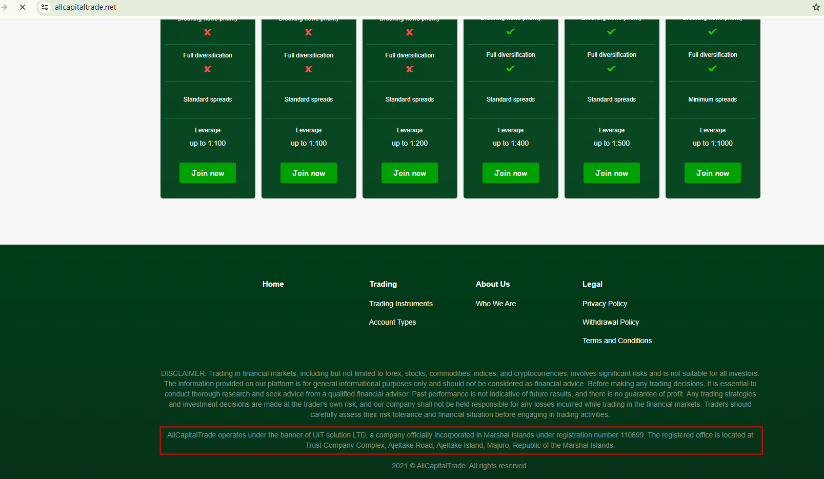 虽然All Capital Trade声称由UIT solution LTD管理,这是一家据说在马绍尔群岛注册的公司(IRI),但重要的是要注意,该机构仅作为公司注册服务提供商。注册于IRI并不授权该实体在特定行业合法运营。这是一个警示信号。