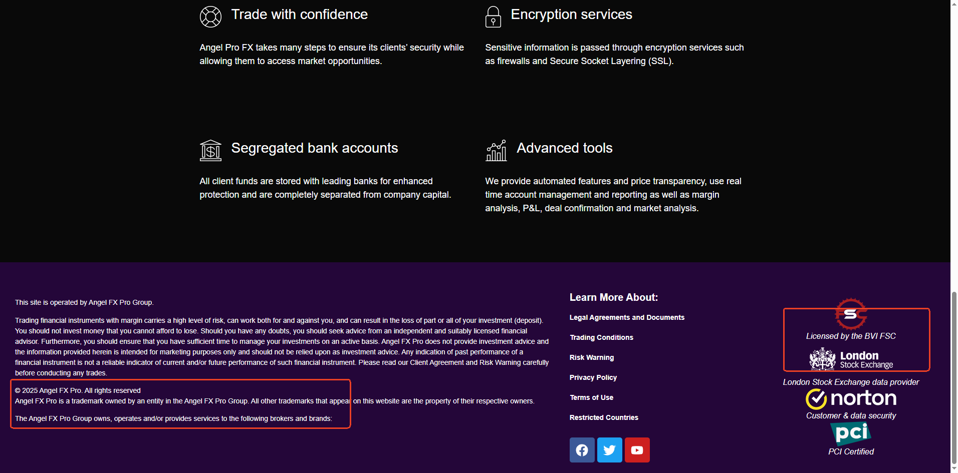 Angel Pro FX appears to be a highly suspicious and likely fraudulent brokerage. It claims to be operated by Angel FX Pro Group, allegedly established in 1996, and states that it is licensed by the British Virgin Islands Financial Services Commission (BVI FSC). However, our investigation reveals significant inconsistencies.