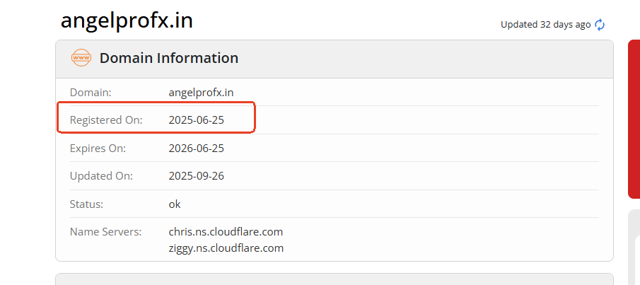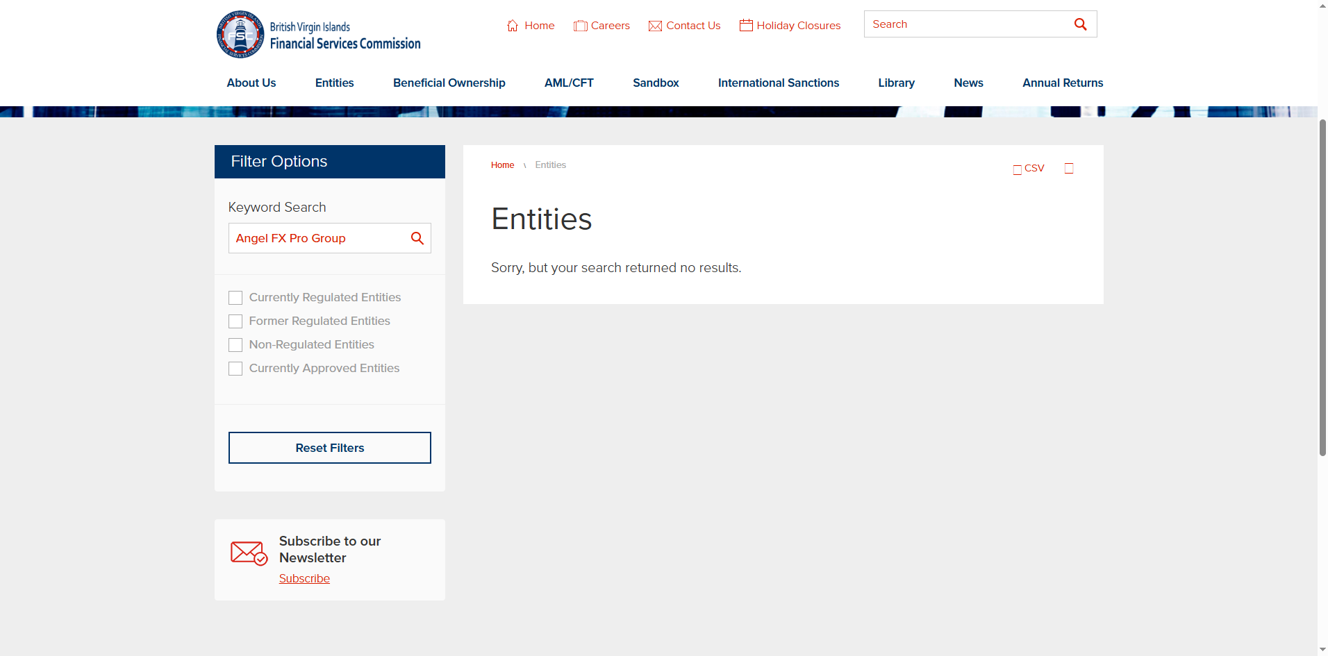 First, domain registration records show that the Angel Pro FX website was only created in June 2025, directly contradicting its claim of operating since 1996. Second, a thorough search of the official BVI FSC public registry yields no record of Angel FX Pro Group or any related entity holding a valid license.