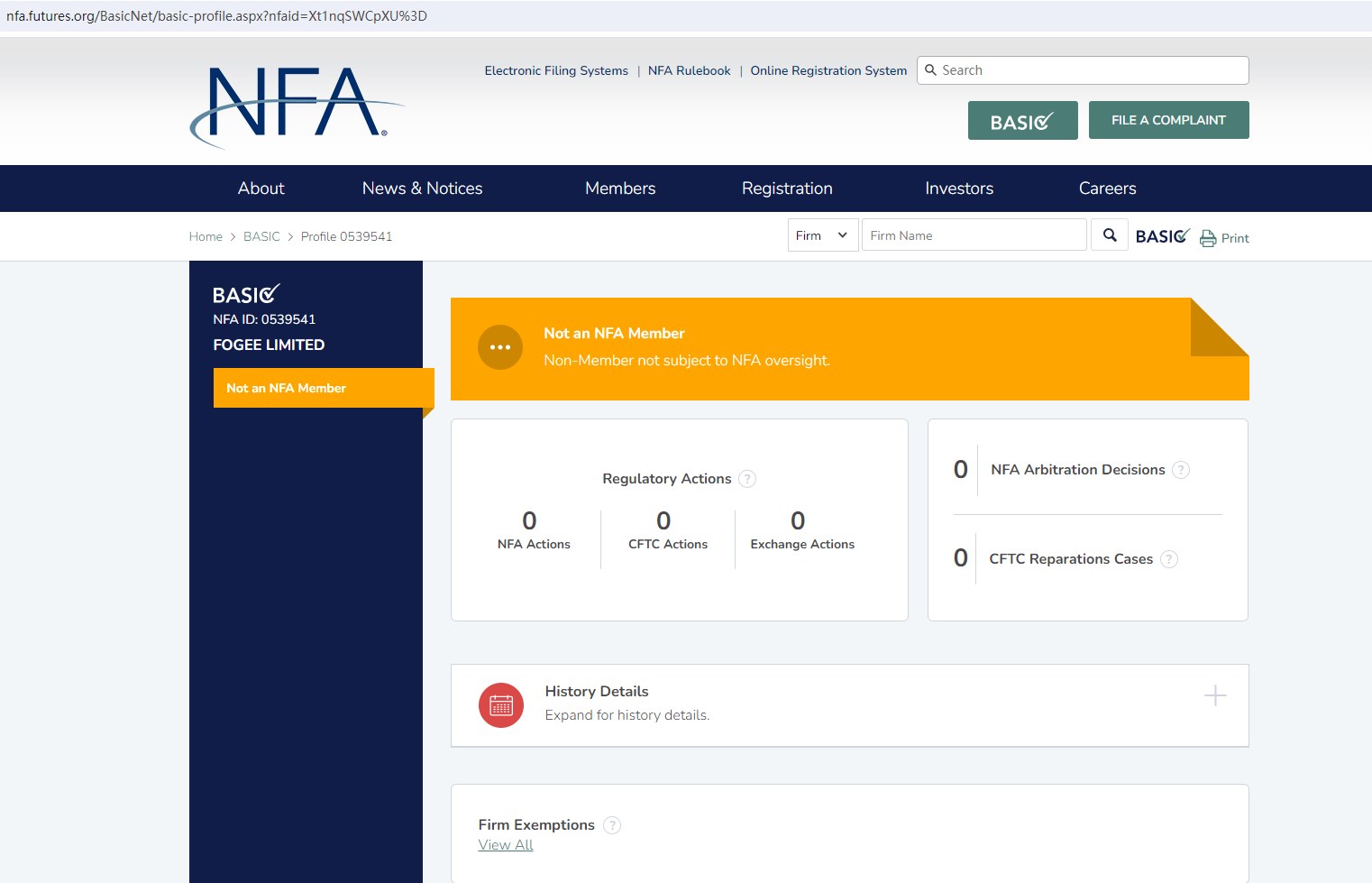 经调查,NFA 0538567 为 SMART CONTRACT GROUP LIMITED,NFA 0539541 为 FOGEE LIMITED。它们均非 NFA 会员。