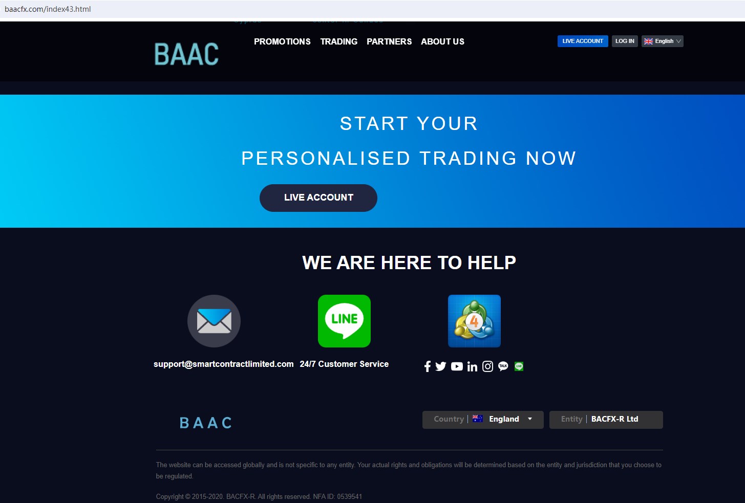 BACFX-R 自称是一家在英国成立的在线交易服务提供商,在多个国家设有办事处或服务中心,并受美国国家期货协会 (NFA) 监管,ID 为 0538567 和 ID 0539541,提供广泛的金融服务,包括货币、金属、商品、指数、股票和加密货币以及全球市场上的更多工具。经调查,NFA 0538567 为 SMART CONTRACT GROUP LIMITED,NFA 0539541 为 FOGEE LIMITED。它们均非 NFA 会员。BACFX-R 不受英国金融行为监管局 (FCA) 的监管。事实上,BACFX-R 不受任何监管机构的监管。让它持有或控制投资者的资金是不安全的,这些资金无法受到任何法律的保护。BACFX-R 是个骗局。